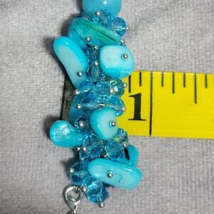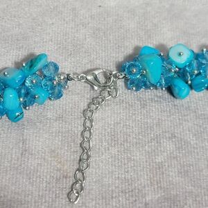 Gorgeous 😍 Blue Shell and Simulated Multi Gemstone Necklace 24-27 inches in Goldtone.