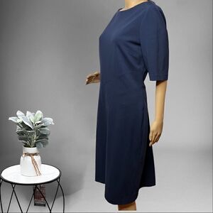 Lafayette 148 New York Knee Length Navy Blue Shift Dress