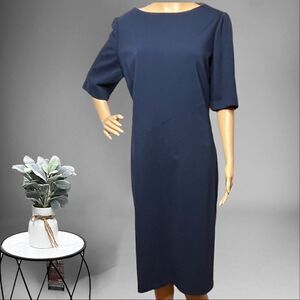 Blue Shift Dress Lafayette 148 Knee Length Navy Knit Half Sleeve Womens Size 18