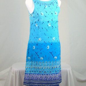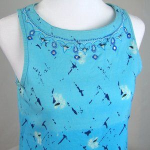Blue Shift Sleeveless Dress Embroidered with Mirrored Squares Med Urban Safari