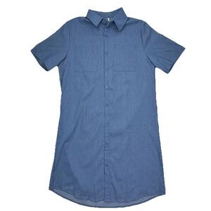 Blue Shirt Dress Short Sleeve Size Large Front Pockets Casual Button Down