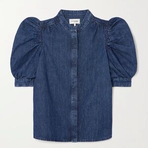 Chic blue denim top with short sleeves. Ideal for casual outings.