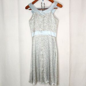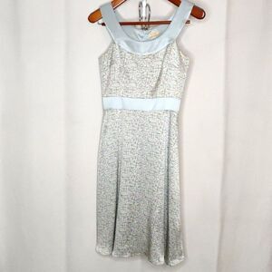 Blue Silk A-Line Dress Sz 2 Crosshatch Pattern Geometric Green Pink Blue Cream
