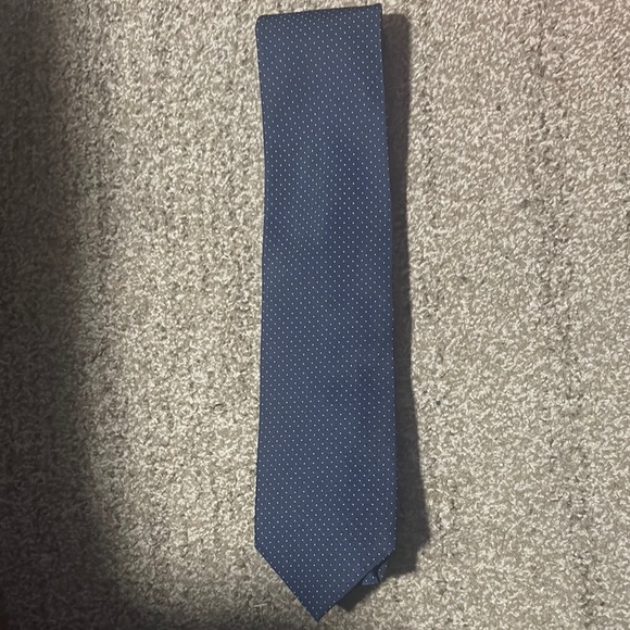This elegant blue tie with white poka dots is crafted from a finely woven silk fabric, offering a subtle sheen and a timeless appeal. Its classic straight design and standard width make it a versatile accessory for any formal occasion. The solid color ensures a sophisticated look, perfect for enhancing your wardrobe.