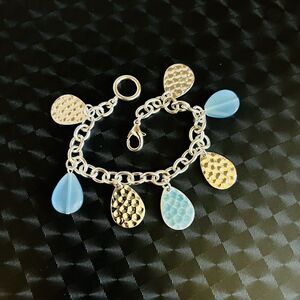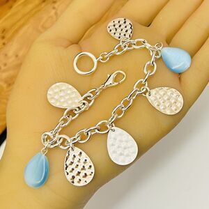 Blue Silver Tone Charm Dangle Drop Bracelet Spring Summer 7”.