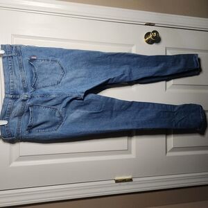 These blue skinny jeans feature a stylish distressed look with visible rips and a vintage-inspired fading effect. The cuffed hems add a touch of casual flair, making them a versatile choice for any laid-back occasion.