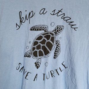 Blue Skip a Straw, Save a Turtle Graphic Tee by Join the Revolution Size Medium
