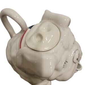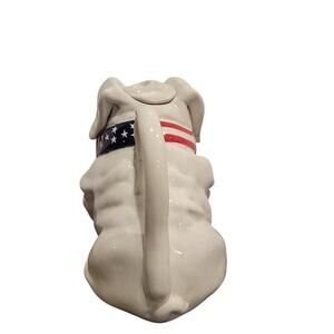 This Blue Sky Ceramics Stars & Stripes Bulldog Pitcher Tea Pot Drink Dispenser is the perfect addition to any whimsical collection! This ceramic pitcher, designed by Heather Goldmine, features a patriotic bulldog design in white, blue, and red. Measuring approximately 8" x 7.5" x 5", it's sure to be a conversation starter at your next tea party.