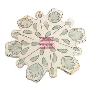 Blue Sky Ceramic Candle Plate 7" Green Leaf Design Luster Glaze Decorative