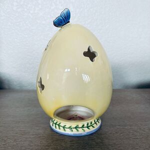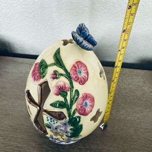 NWT Blue Sky Ceramics beautiful ceramic spring Easter egg candle holder decor figure with cross cutout in front space in the back for a tea light or similar.