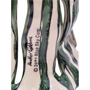 This hand-painted ceramic Santa figurine adds a festive touch to holiday decor. Intricately designed with stars and animals, it embodies cheerful Christmas spirit. c. 2001