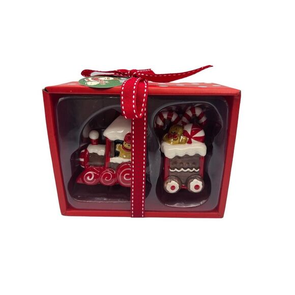 Blue Sky Clayworks Gingerbread Train Salt & Pepper Set