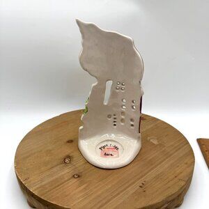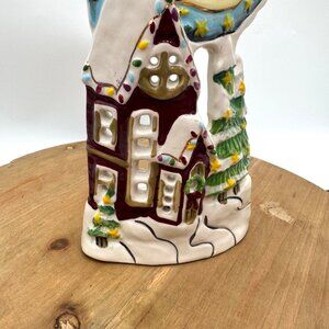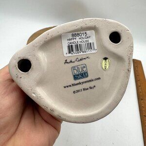 This charming Blue Sky Clayworks Heather Goldminc Santa and Reindeer House Tea Light Votive Holder adds a festive touch to any room. Perfect for holiday décor or as a unique gift for collectors.