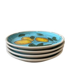Blue Sky Clayworks Lemon Sky Side Plates 8in Set of 4 Blue & Yellow NEW
