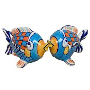 Add a splash of ocean charm to your space with this playful Blue Sky βDianeβ ceramic kissing fish pair ππ. Featuring bold hand-painted colors in shades of blue, orange, and yellow with whimsical checkered details, these two fish meet in a sweet kiss β perfect for adding a touch of joy and seaside whimsy to any shelf, table, or display.