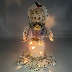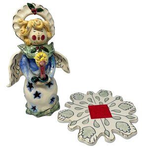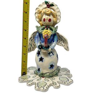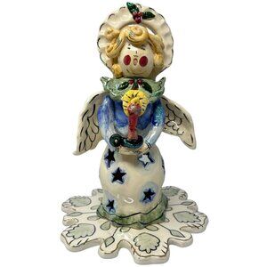 Blue Sky Heather Goldminc Caroling Angel Tea Light Candle Holder Leaf Base 2002