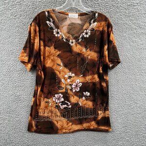 Blue Sky of Florida Womens Top One Size Brown Sparkle Pullover Short Sleeve Shirt