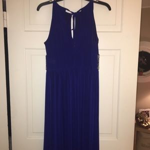 Blue Sleeveless Beaded Gown. Prom/ Formal/ Wedding