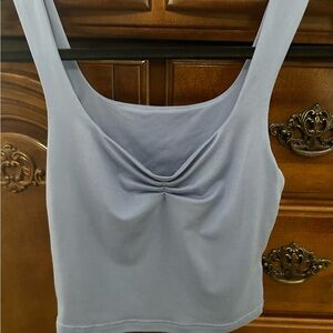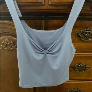 Elevate your wardrobe with this stylish blue sleeveless top. Perfect for any occasion, it offers both comfort and elegance.