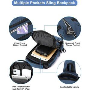 Blue Sling Crossbody Backpack Shoulder Messenger Bag for Men,