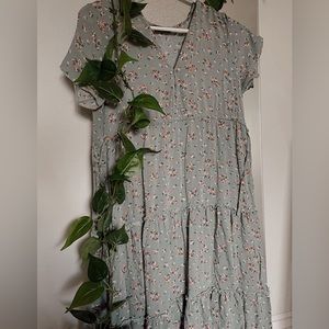 This adorable light sea glass teal dress is incredibly soft and extremely flowy. It’s a perfect midi summer dress! Completely free of stains, pilling, or tears. I have only worn it twice this summer!