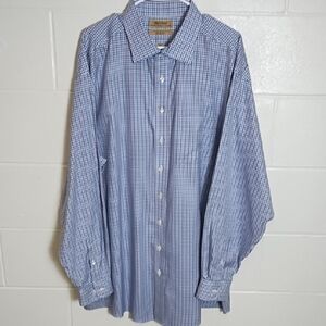 Blue Small Plaid Button Down Shirt Tall Gold Label