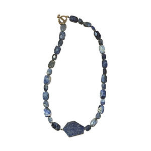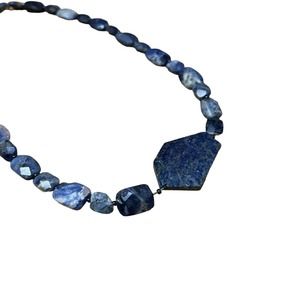 Blue Sodalite Statement Necklace Natural Stone Raw Rough Cut 19" Long