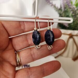 These delicate wire-wrapped dangle earrings are crafted with care and the highest attention to detail, featuring silver-plated tarnish-resistant wire, and oval blue Sodalite stones.