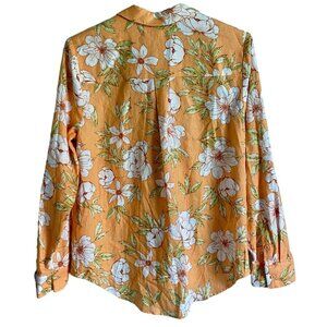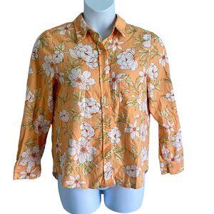 Blue Sol Linen Blend Floral Long Sleeve Button Up Shirt Roll Tab Women's Medium