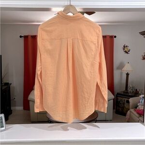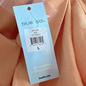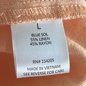 Blue Sol Womens Linen Rayon Solid Button Down Roll Tab Sleeve Top Sz L Peach NWT
