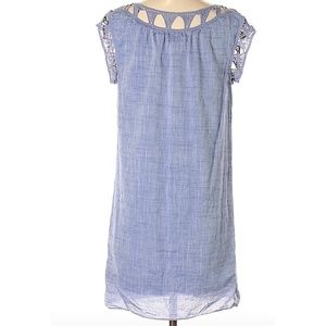 100% Cotton, super light and comfortable. Delicate lace on the neckline and sleeves. Very easy and very pretty. Could be considered a little purplish blue. 36" Chest, 33" Length. Size Small / S