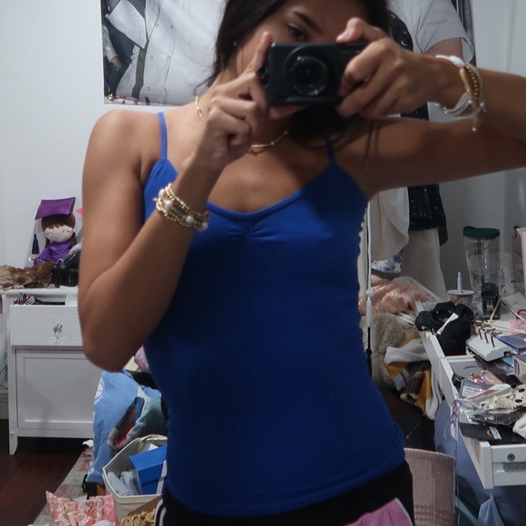 Stylish blue spaghetti strap top. Perfect for casual outings.