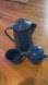 Blue Speckled Enamel Coffee, Cream, & Sugar Set. Blue with white speckles.