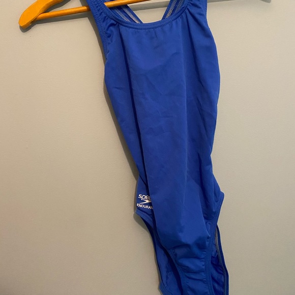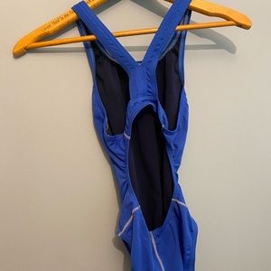 Speedo racing suit in cobalt blue. Elastic in good condition. Suit size 28.