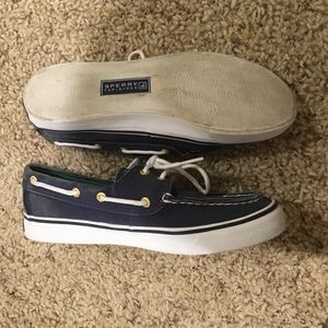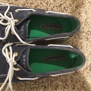 Blue Sperry's. VERY lightly worn