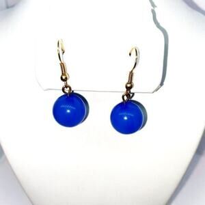 Blue Sphere Bead Dangle Earrings