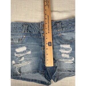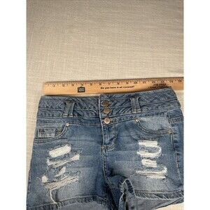 Blue Spice 3 Button Jean Shortie Distressed Blue Juniors Sz 5/6 Booty Shorts