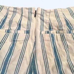 These are Blue Spice blue and white striped coastal shorts with a zipper closure in the back.