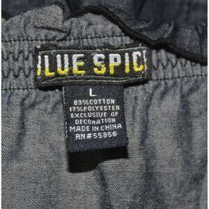 Blue Spice Dark Chambray Tube Top Sleeveless Romper Jumpsuit Size L Crop Pockets