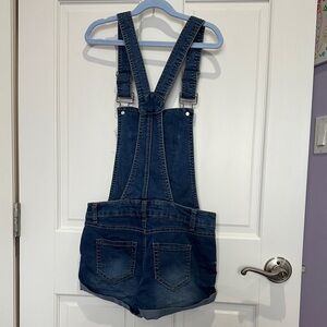 Classic denim overalls by Blue Spice. Features sturdy buckle straps and front label detail.
