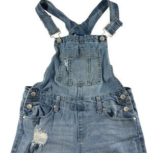 Blue Spice Distressed Bib Overalls Junior Size 7 Denim Blue Jeans Stretch