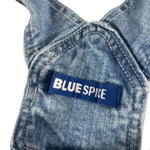 Blue Spice Distressed Bib Overalls Junior Size 7 Denim Blue Jeans Stretch in good preowned condition. 98% cotton 2% spandex machine wash.