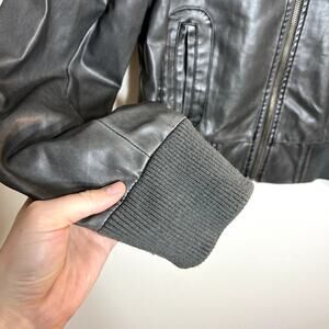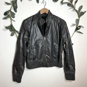 Blue Spice Gray Faux Leather Moto Jacket LAST CALL
