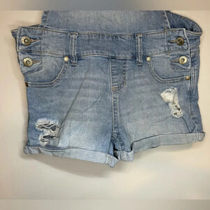 Blue Spice Light Wash DESTROYED Denim Overall DAISY DUKE'S Shorts Girl SZ 1