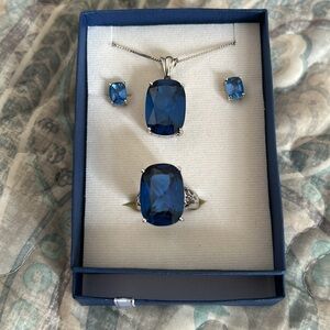 38.00ctw rectangular cushion lab created blue spinel rhodium over sterling silver boxed set.