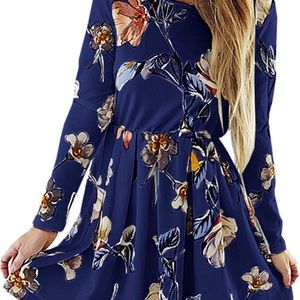 Short blue dress with flowers. Never worn and still in package. Long sleeve and light material