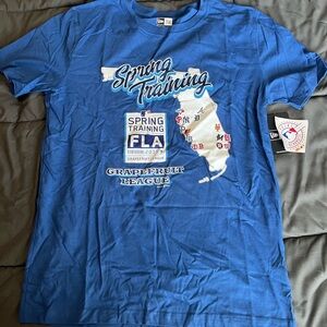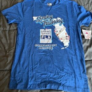 Vibrant blue t-shirt featuring a Spring Training design. Perfect for baseball fans.