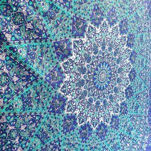 Perfect for apartments or dorms! Use as a beach blanket, wall hanging, tablecloth, picnic blanket and so much more. 100% cotton. Approximately 85"x85" or the size of a queen size sheet. Aqua/Blue/Gray.