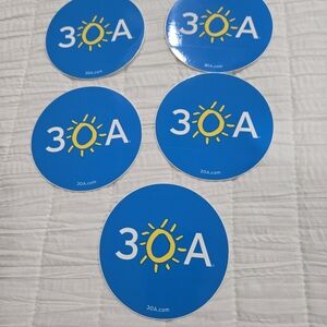 30A Blue Sticker Set. Featuring a vibrant blue color, these stickers are perfect for adding a touch of fun. Show off your love for 30A with this eye-catching design.