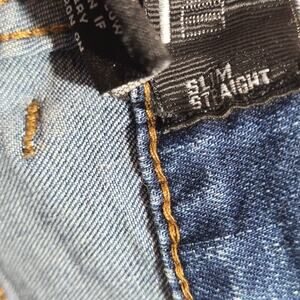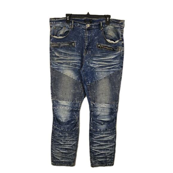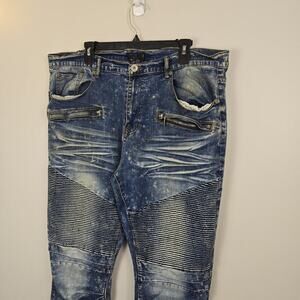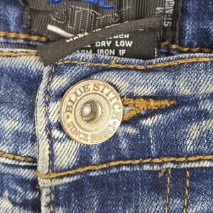 Blue Stitch Slim Straight Men's Blue Jeans Distressed 38W 32L Punk Grunge Skater